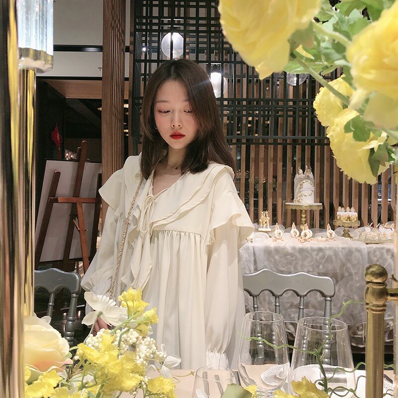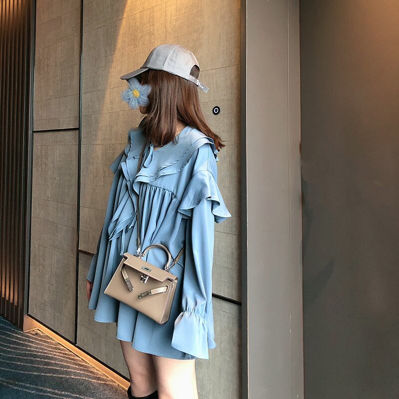 肩回りの大きなフリルは可愛さを強調するだけでなく、肩幅と体型のカバーもしてくれる優れもの。