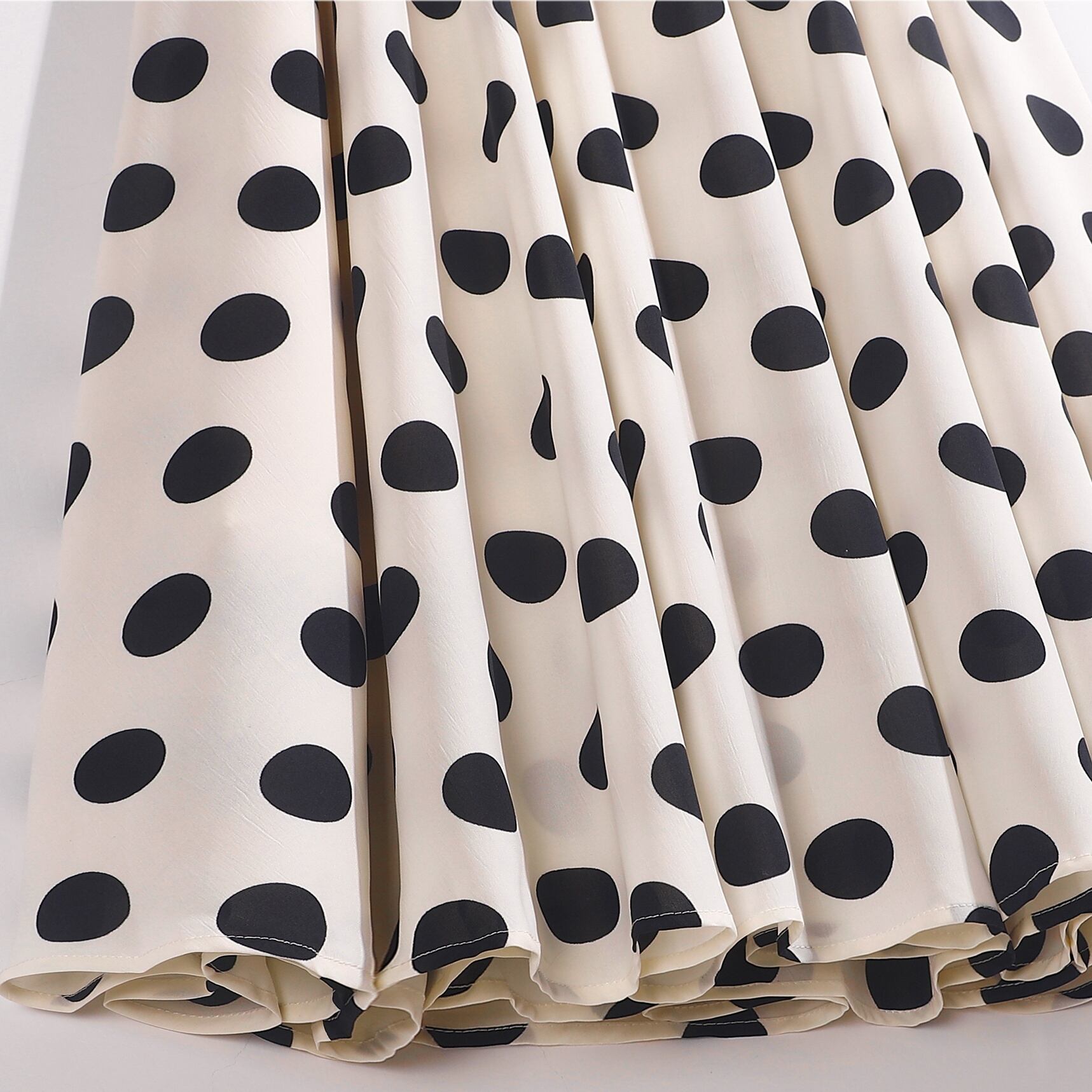 スカート レディース フレアワンピース Aラインワンピース ミモレ丈 柄 ドット 水玉 春 秋 スリム Aライン シフォン かわいい 大人可愛い きれいめ シンプル カジュアル 大人 上品 おしゃれ お洒落 大人可愛い 大人女子 キュート ガーリー とろみ感 ミモレ 白 ホワイト 黒 ブラック くすみカラー アプリコット S M L 20代 30代 通勤 学生 通学 デート お出かけ 女子会 着回し 普段使い 韓国 韓国系 オルチャン ファッション コーデ スタイル 楽ちん モテ | Rena 韓国ファッション レディースアパレル