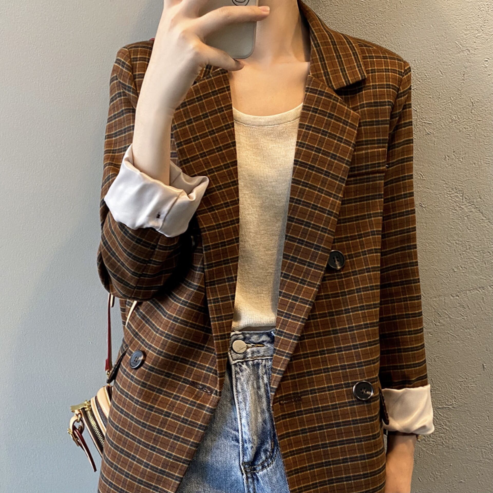 アウター レディース ジャケット 長袖 柄 チェック 春 秋 スリム ストレート Iライン かわいい 大人可愛い きれいめ シンプル カジュアル 大人 上品 おしゃれ お洒落 かっこいい レトロ 大人可愛い 大人女子 こなれ感 ラフ 個性的 Vネック 袖あり くすみカラー 大人カラー ベイクドカラー ニュアンスカラー M L 20代 30代 オフィス ビジネス OL 通勤 学生 通学 デート お出かけ 女子会 休日 着回し 普段使い 韓国 韓国系 モテ 新作 安い 送料無料 トレンド 流行 インスタ映え | Rena 韓国ファッション レディースアパレル