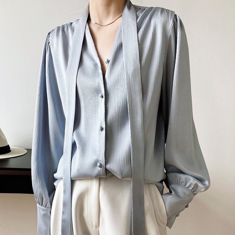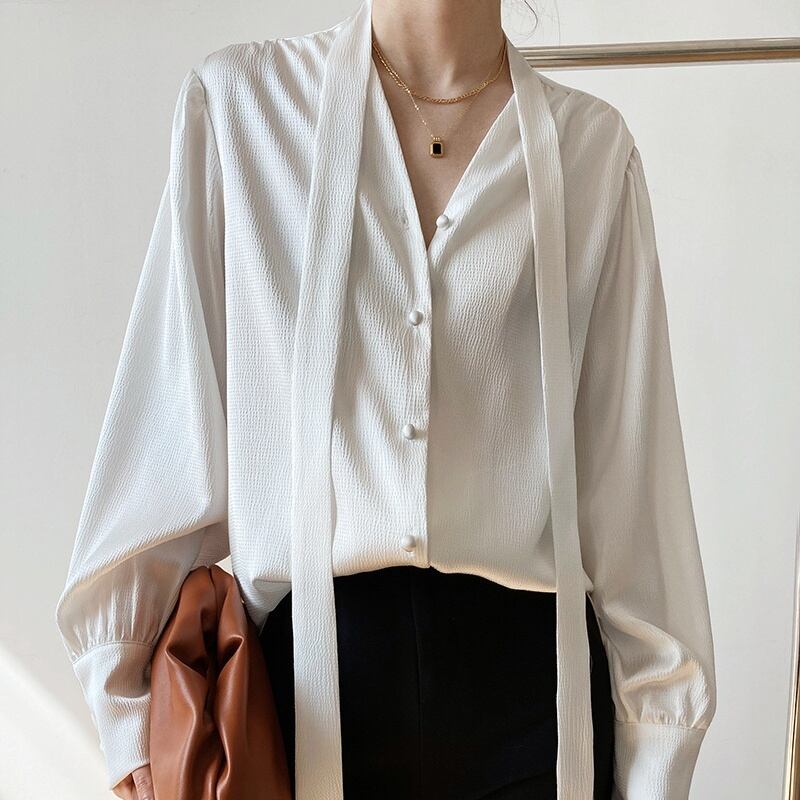 シャツ ブラウス 長袖 無地 春 秋 スリム ストレート Iライン かわいい 大人可愛い きれいめ シンプル カジュアル 大人 上品 おしゃれ お洒落 ルーズ 個性的 フォーマル とろみ感 抜け感 Vネック 袖あり ポリエステル 白 ホワイト 黒 ブラック 青 ブルー M L ゆったり 20代 30代 オフィス 通勤 お出かけ 公園デビュー 女子会 休日 着回し 普段使い 韓国 韓国系 オルチャン ファッション コーデ 楽ちん 新作 定番 送料無料 トレンド 流行 インスタ映え | Rena 韓国ファッション レディースアパレル