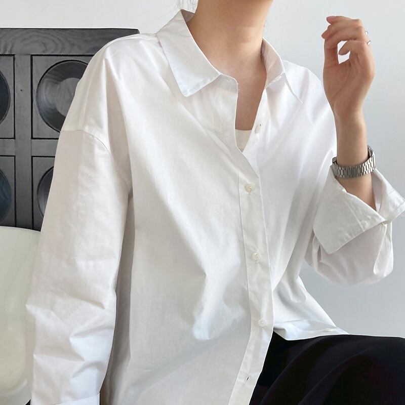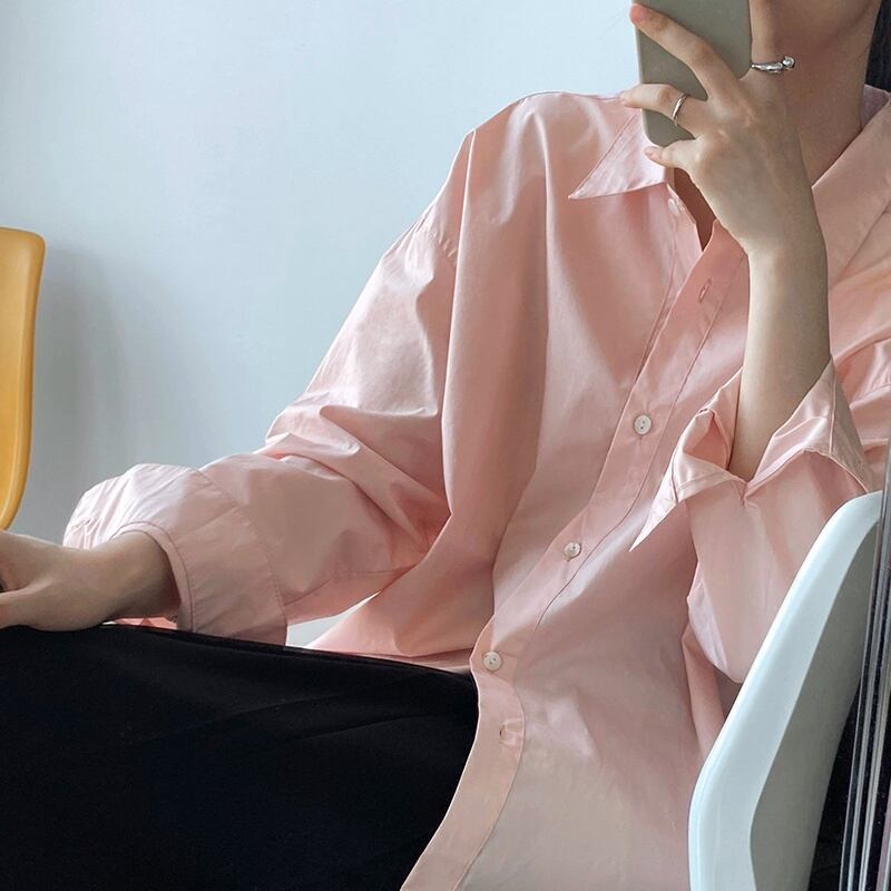 シャツ 長袖 無地 春 秋 スリム ストレート Iライン かわいい 大人可愛い きれいめ シンプル カジュアル 大人 上品 おしゃれ お洒落 かっこいい レトロ 大人可愛い 大人女子 こなれ感 ラフ 主役級 存在感 フォーマル とろみ感 Vネック 袖あり 白 ホワイト ピンク くすみカラー 大人カラー M L 20代 30代 オフィス ビジネス OL 通勤 学生 通学 デート お出かけ 公園デビュー 女子会 休日 着回し 普段使い 韓国 韓国系 コーデ 定番 プチプラ 激安 送料無料 トレンド 流行 | Rena 韓国ファッション レディースアパレル
