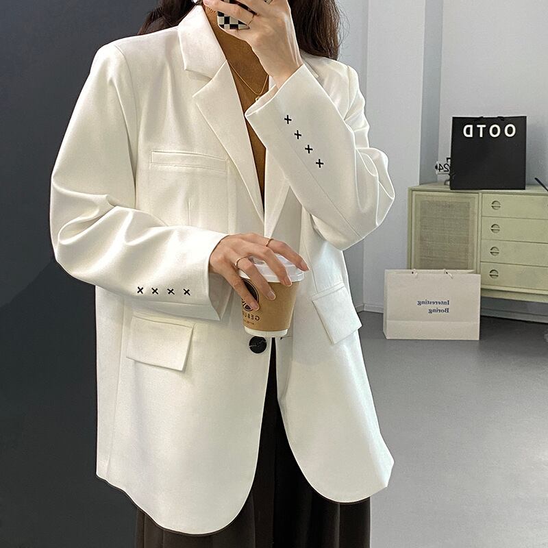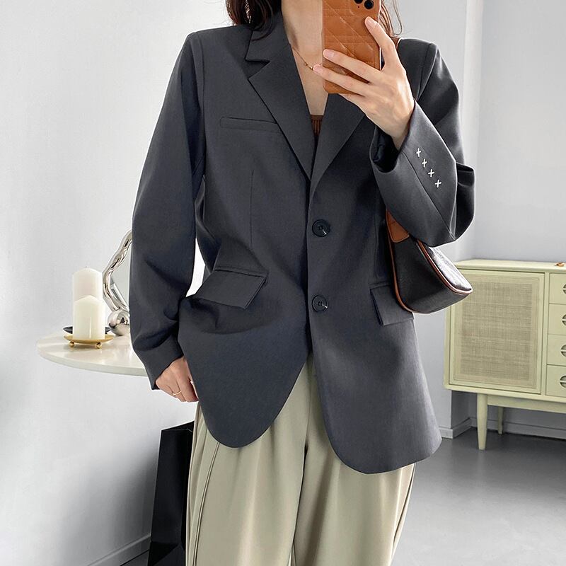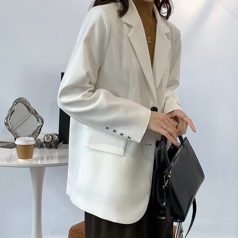 スーツ ジャケット 長袖 無地 春 秋 大人可愛い きれいめ シンプル カジュアル 大人 上品 おしゃれ お洒落 かっこいい 大人女子 個性的 クール 主役級 存在感 袖あり 白 ホワイト 青 ブルー 灰色 グレー M L 10代 20代 30代 40代 50代 女性用 オフィス ビジネス OL 通勤 入学式 入園式 卒業式 卒園式 着回し 普段使い ファッション コーデ 送料無料 | Rena 韓国ファッション レディースアパレル