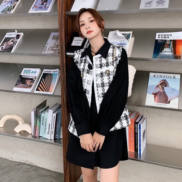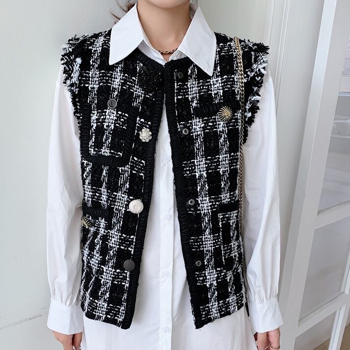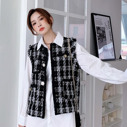 ベスト ノースリーブ チェック 秋 かわいい 大人可愛い きれいめ シンプル 大人 上品 おしゃれ お洒落 かっこいい 大人女子 クール エレガント 主役級 存在感 袖あり 黒 ブラック S M L XL 10代 20代 30代 女性用 通勤 学生 通学 デート お出かけ 公園デビュー 女子会 休日 着回し 普段使い ファッション コーデ モテ 送料無料 インスタ映え | Rena 韓国ファッション レディースアパレル