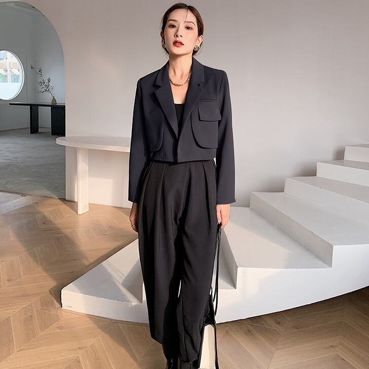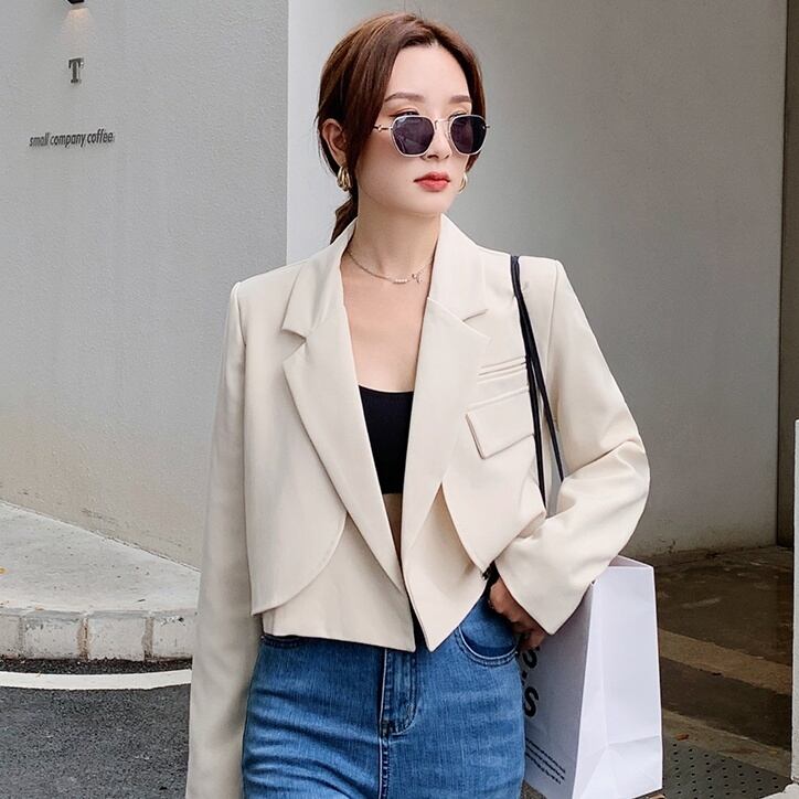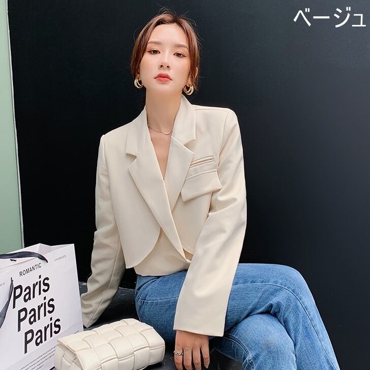 アウター レディース スーツ ジャケット ショート丈 長袖 無地 春 秋 かわいい 大人可愛い きれいめ シンプル カジュアル 大人 上品 おしゃれ お洒落 かっこいい 大人女子 個性的 クール エレガント 主役級 存在感 ショート 袖あり 黒 ブラック 灰色 グレー ベージュ S M L 10代 20代 30代 女性用 オフィス ビジネス OL 通勤 学生 通学 デート お出かけ 公園デビュー 女子会 休日 着回し 普段使い ファッション コーデ モテ 送料無料 インスタ映え | Rena 韓国ファッション レディースアパレル