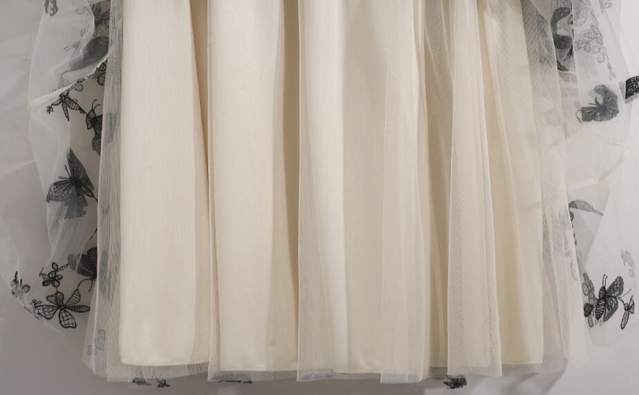 ふんわりかわいらしいスカートに、人気の蝶の柄をあしらいました。