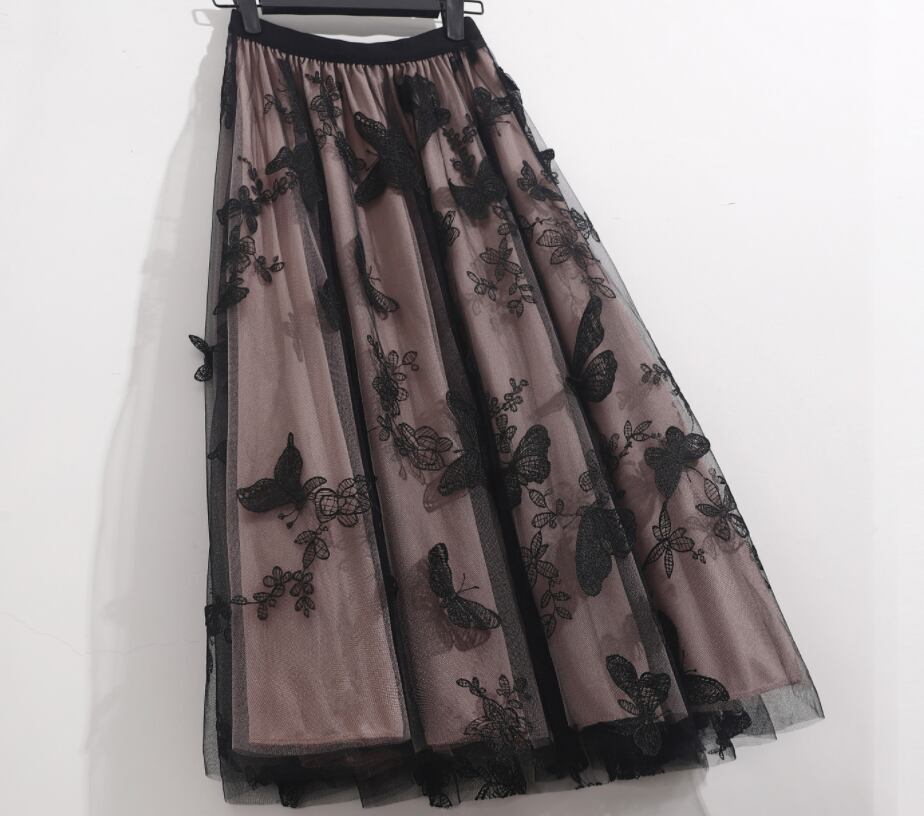 スカート Aラインスカート 七分丈 柄 刺繍 春 夏 フレア Aライン ふわふわ ウエストゴム 伸縮性 かわいい 大人可愛い きれいめ シンプル カジュアル 大人 上品 おしゃれ お洒落 かっこいい 大人女子 ラブリー キュート ガーリー 個性的 エレガント ブラック ブルー グレー ピンク 大人カラー アプリコット フリーサイズ 10代 20代 30代 40代 50代 学生 通学 デート お出かけ 女子会 休日 パーティー 着回し 普段使い ファッション コーデ モテ 送料無料 | Rena 韓国ファッション レディースアパレル