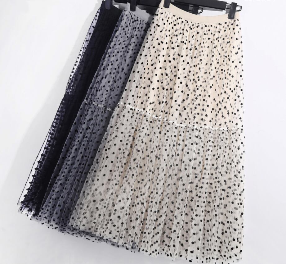 スカート Aラインスカート 七分丈 ドット 水玉 春 夏 フレア Aライン ふわふわ ウエストゴム 伸縮性 かわいい 大人可愛い きれいめ シンプル カジュアル 大人 上品 おしゃれ お洒落 かっこいい 大人女子 こなれ感 ラブリー キュート ガーリー 個性的 エレガント ブラック グレー 大人カラー アプリコット フリーサイズ 10代 20代 30代 40代 50代 学生 通学 デート お出かけ 女子会 休日 パーティー 着回し 普段使い ファッション コーデ スタイル モテ 送料無料 | Rena 韓国ファッション レディースアパレル