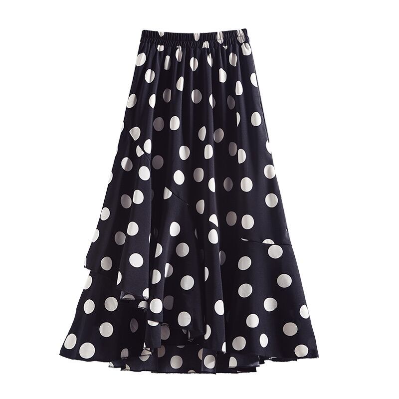 スカート フレアスカート 七分丈 ドット 水玉 春 夏 フレア Aライン アシンメトリー ウエストゴム 伸縮性 かわいい 大人可愛い きれいめ シンプル カジュアル 大人 上品 おしゃれ お洒落 かっこいい レトロ 大人女子 こなれ感 ラブリー キュート ガーリー 個性的 エレガント ブラック ベージュ 大人カラー フリーサイズ 10代 20代 30代 40代 50代 学生 通学 デート お出かけ 女子会 休日 パーティー 着回し 普段使い ファッション コーデ スタイル モテ 送料無料 | Rena 韓国ファッション レディースアパレル