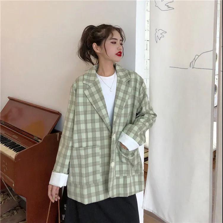 アウター レディース ジャケット 長袖 チェック 春 秋 ワイド 前開き かわいい 大人可愛い きれいめ シンプル カジュアル 大人 上品 おしゃれ お洒落 かっこいい レトロ 大人女子 こなれ感 メンズライク ボーイッシュ ラブリー キュート ガーリー 個性的 グリーン ベージュ ピンク 大人カラー フリーサイズ 10代 20代 30代 40代 50代 通勤 学生 通学 デート お出かけ 女子会 休日 旅行 着回し 普段使い ファッション コーデ スタイル 体系カバー 送料無料 | Rena 韓国ファッション レディースアパレル