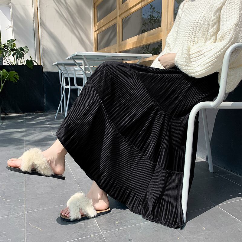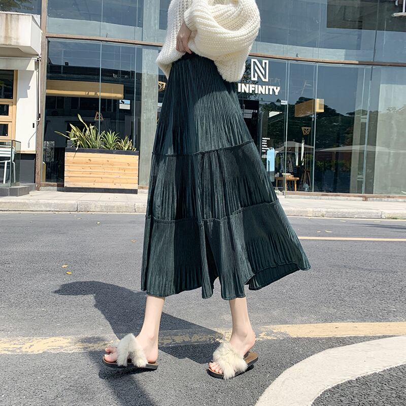 スカート Aラインスカート 九分丈 無地 春 秋 Aライン プリーツ 切り替えデザイン ハイウエスト ウエストゴム かわいい 大人可愛い きれいめ シンプル カジュアル 大人 上品 おしゃれ お洒落 かっこいい レトロ 大人女子 こなれ感 ラブリー キュート ガーリー エレガント ブラック グリーン 大人カラー フリーサイズ 10代 20代 30代 40代 50代 60代 オフィス ビジネス OL 通勤 学生 通学 デート お出かけ 女子会 ファッション コーデ スタイル 脚長 送料無料 | Rena 韓国ファッション レディースアパレル