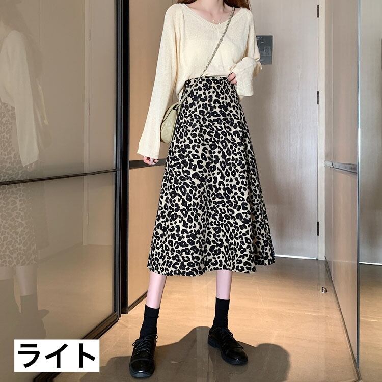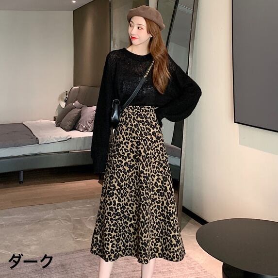 スカート レディース Aラインワンピース ミモレ丈 柄 ヒョウ柄 アニマル柄 秋 冬 スリム 細身 ストレート Iライン 伸縮性 かわいい 大人可愛い きれいめ カジュアル 大人 上品 おしゃれ お洒落 レトロ 大人女子 こなれ感 ミモレ 大人カラー ベイクドカラー バイカラー S M 20代 30代 女性用 デート お出かけ 公園デビュー 女子会 休日 旅行 着回し 普段使い 韓国 韓国系 オルチャン ファッション コーデ 楽ちん モテ 送料無料 トレンド 流行 インスタ映え | Rena 韓国ファッション レディースアパレル