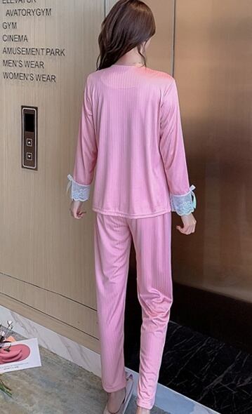 パジャマ レディース ロング丈 長袖 春 秋 レース リボン かわいい 大人可愛い きれいめ 大人 上品 おしゃれ お洒落 大人女子 キュート ガーリー セクシー エレガント 主役級 存在感 ロング 袖あり 部屋着 寝巻き ナイトウェア ポリエステル 上下セット ツーピース 赤 レッド 青 ブルー ピンク M L XL 2XL 10代 20代 30代 女性用 お泊まり 旅行 普段使い スタイル 楽ちん モテ 送料無料 | Rena 韓国ファッション レディースアパレル