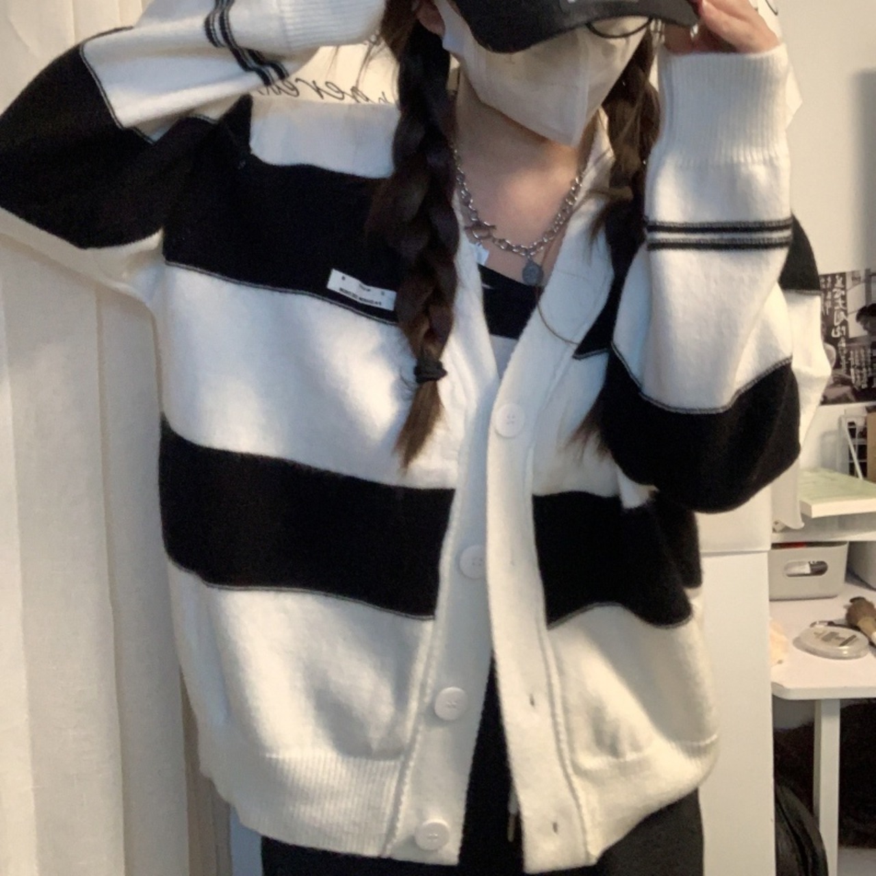秋冬定番のカーディガンに太めのボーダーがアクセントのショート丈で登場です。