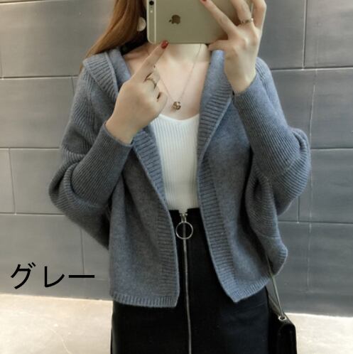 アウター レディース ニット カーディガン 長袖 無地 秋 冬 フード付き かわいい 大人可愛い シンプル カジュアル ラフ ラブリー キュート ガーリー ルーズ 抜け感 ショート 萌袖 ホワイト ブラック ブラウン グレー ベージュ ピンク S M L XL ゆったり ゆる 10代 20代 30代 女性用 学生 デート お出かけ 女子会 休日 着回し 普段使い ファッション コーデ 楽ちん あったか | Rena 韓国ファッション レディースアパレル
