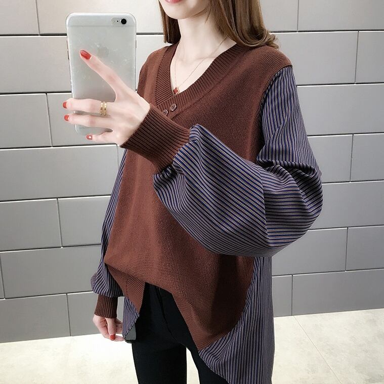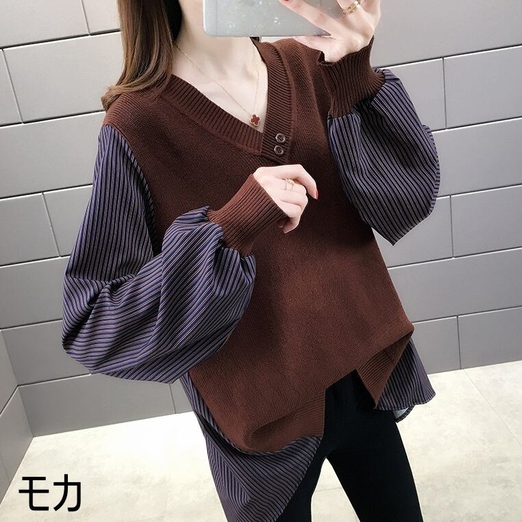 ニット 長袖 秋 冬 切り替えデザイン かわいい 大人可愛い きれいめ シンプル カジュアル 大人 上品 おしゃれ お洒落 大人女子 キュート 個性的 エレガント 主役級 存在感 Vネック 黒 ブラック 茶色 ブラウン 灰色 グレー バイカラー 秋カラー M L XL 10代 20代 30代 女性用 通勤 学生 通学 デート お出かけ 公園デビュー 女子会 休日 着回し 普段使い ファッション コーデ モテ 送料無料 インスタ映え | Rena 韓国ファッション レディースアパレル