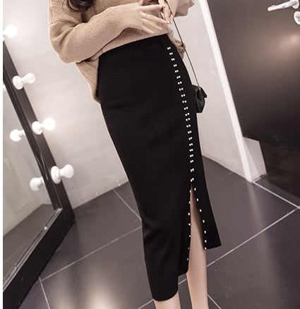 スカート タイトスカート 膝丈 膝上 ひざ下 無地 秋 タイト スリット かわいい 大人可愛い きれいめ 大人 おしゃれ お洒落 かっこいい 大人可愛い 大人女子 キュート クール セクシー ひざ丈 黒 ブラック S M L XL 2XL 10代 20代 30代 デート お出かけ 女子会 休日 パーティー イベント ファッション コーデ スタイル モテ 送料無料 | Rena 韓国ファッション レディースアパレル