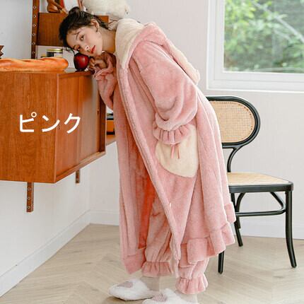パジャマ レディース 七分丈 長袖 キャラクター 秋 冬 ワイド もこもこ モコモコ ふわふわ フード付き 前開き ウエストゴム かわいい 大人可愛い きれいめ シンプル カジュアル 大人 上品 おしゃれ 大人女子 ラフ ラブリー キュート ガーリー 袖あり 萌袖 寝巻き ナイトウェア ネグリジェ ポリエステル 厚手 2点セット ブルー パープル ピンク パステルカラー M L XL 10代 20代 30代 40代 50代 デート お出かけ 女子会 お泊まり 普段使い あったか モテ 送料無料 | Rena 韓国ファッション レディースアパレル