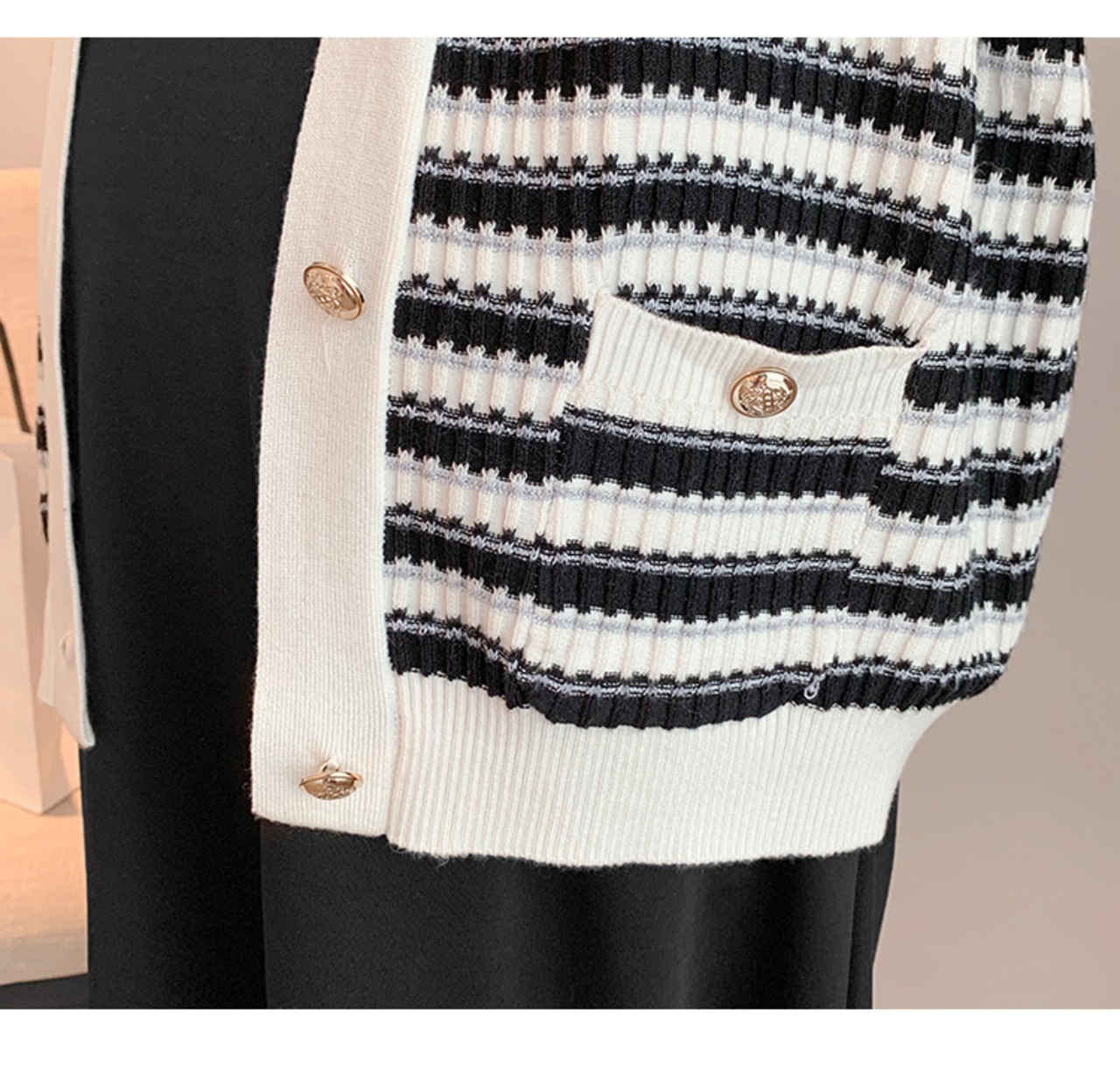 ストライプ柄のカーディガンも落ち着いて上品なデザインで、着心地抜群のアイテムです。