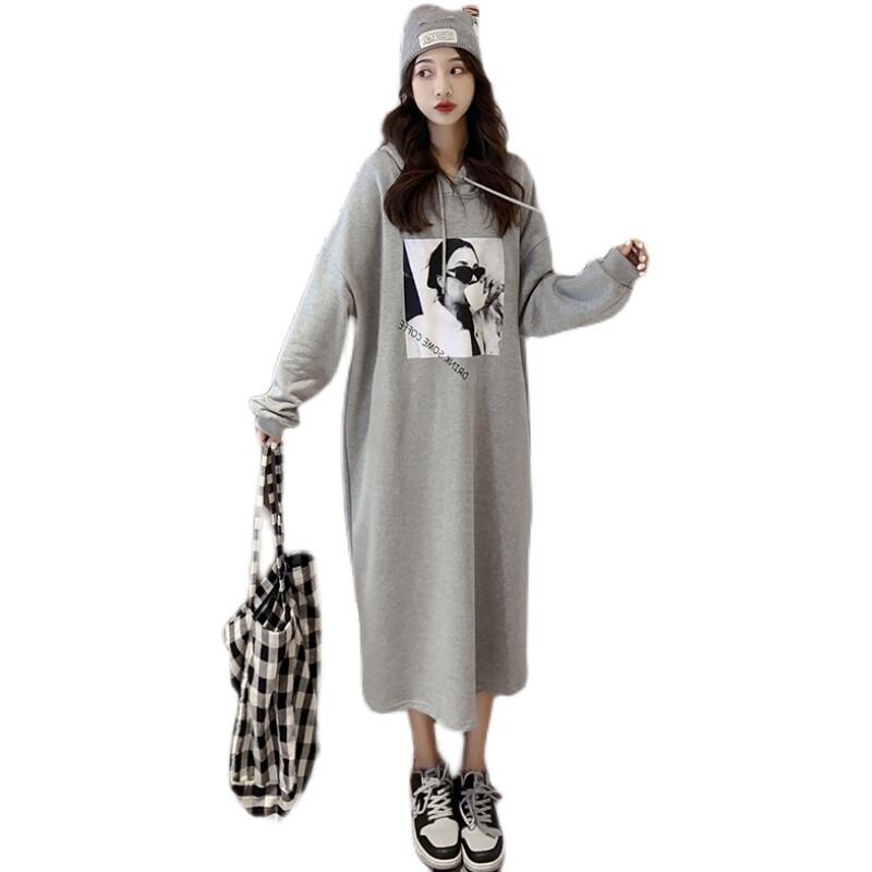 ワンピース パーカー パーカーワンピース ロング丈 長袖 プリント 春 秋 冬 Iライン フード付き かわいい シンプル カジュアル おしゃれ お洒落 かっこいい 大人可愛い こなれ感 ラフ ボーイッシュ スポーティー ルーズ ロング 萌袖 黒 ブラック 灰色 グレー M L XL 2XL ゆったり ゆる 10代 20代 30代 40代 女性用 ママ マタニティ デート お出かけ 公園デビュー 休日 アウトドア 普段使い 楽ちん ゆったり | Rena 韓国ファッション レディースアパレル