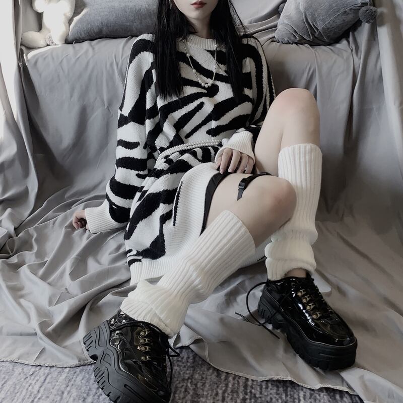 ニット セーター 長袖 セブラ柄 秋 冬 かわいい カジュアル おしゃれ お洒落 かっこいい キュート ガーリー 個性的 存在感 クルーネック 萌袖 ニット フリーサイズ ゆる 10代 20代 30代 女性用 デート お出かけ 女子会 休日 着回し 普段使い ファッション コーデ あったか 暖かい モテ 体系カバー インスタ映え ゆったり | Rena 韓国ファッション レディースアパレル