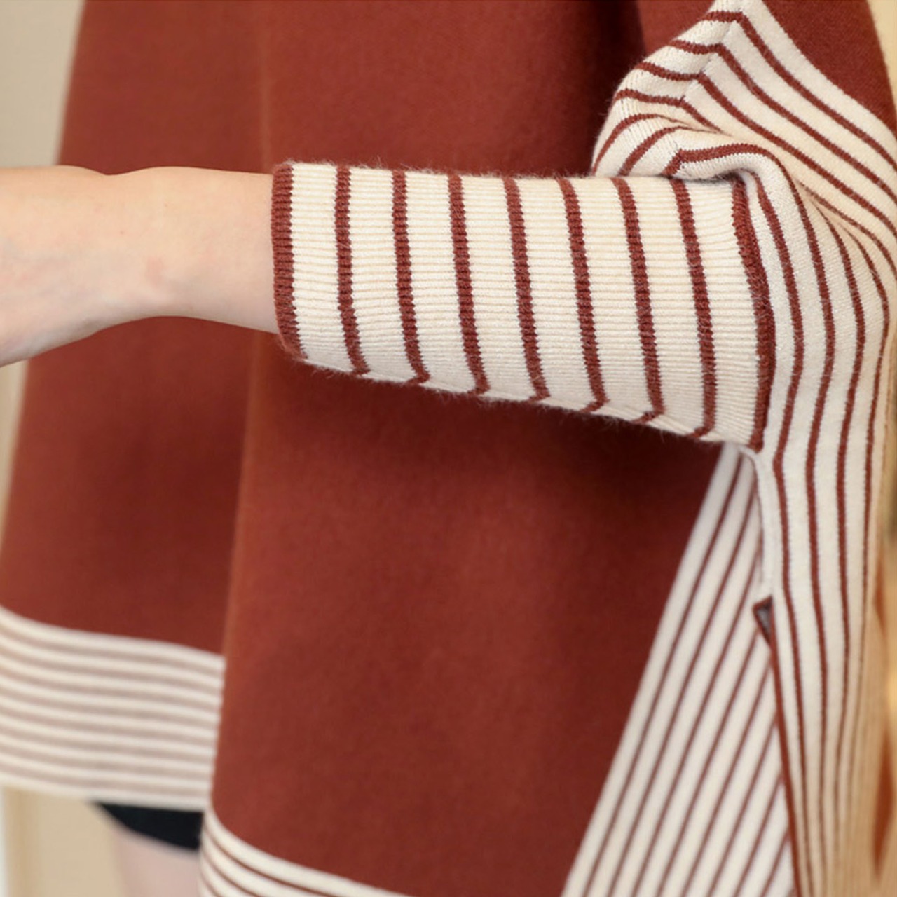 大人っぽく、スタイリッシュなデザインが魅力的なニットセーターです。