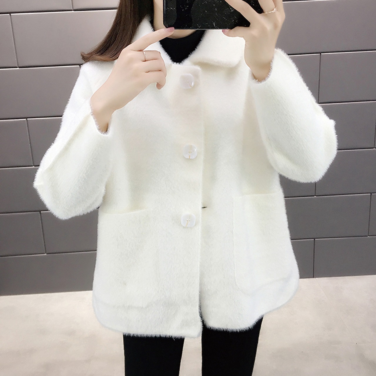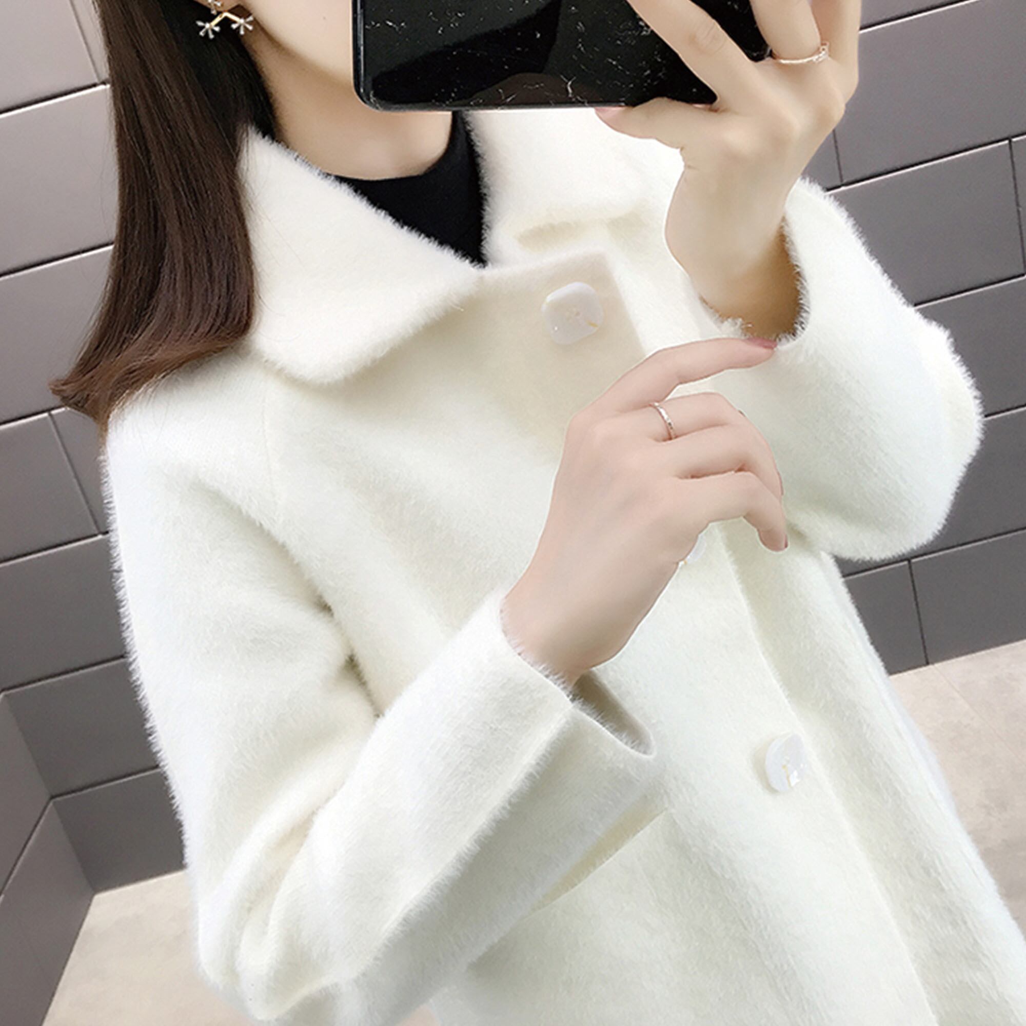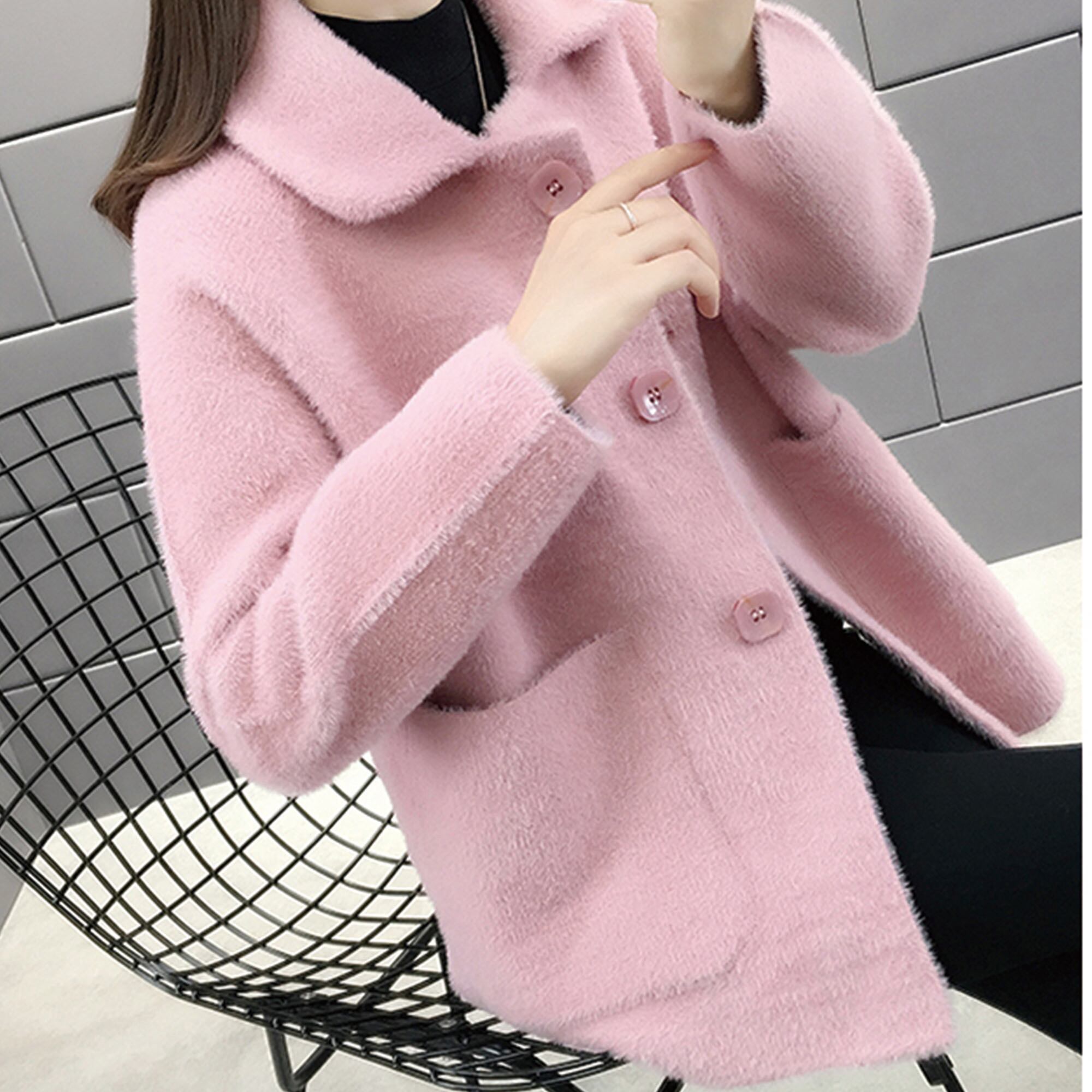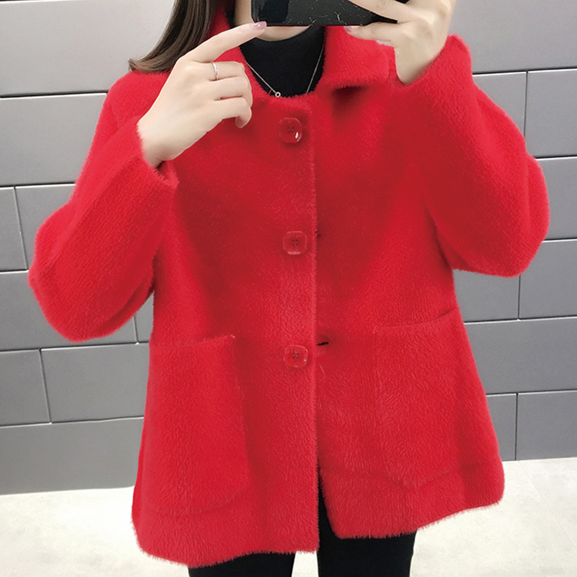 アウター レディース コート 長袖 無地 秋 冬 もこもこ モコモコ ふわふわ ポケット 大人可愛い きれいめ シンプル 大人 上品 おしゃれ お洒落 ルーズ 襟付き もこもこアウター 白 ホワイト 黒 ブラック 赤 レッド ピンク キャメル M L XL XXL XXXL ゆったり あったか 暖かい 防寒 | Rena 韓国ファッション レディースアパレル