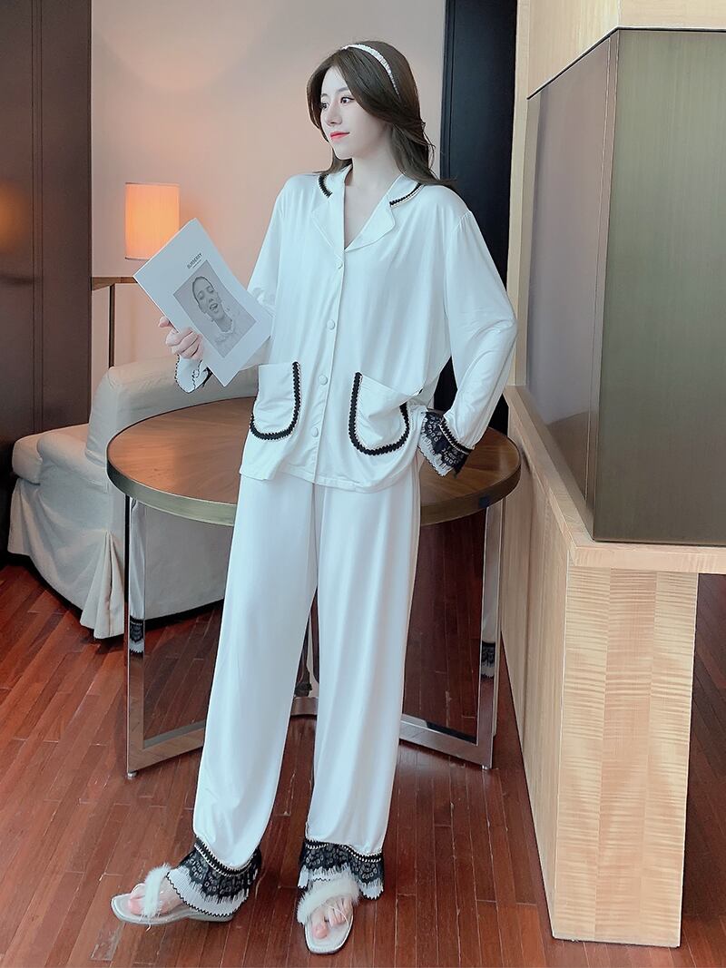 モノトーンパジャマ パジャマ レディース シャツ 長袖 無地 春 夏 秋 冬 裾フレア レース かわいい 大人可愛い きれいめ シンプル 大人 上品 おしゃれ お洒落 大人可愛い 大人女子 エレガント 抜け感 Vネック 袖あり 部屋着 ナイトウェア 上下セット 白 ホワイト 黒 ブラック M L XL 10代 20代 30代 40代 50代 60代 お泊まり 旅行 普段使い 楽ちん | Rena 韓国ファッション レディースアパレル
