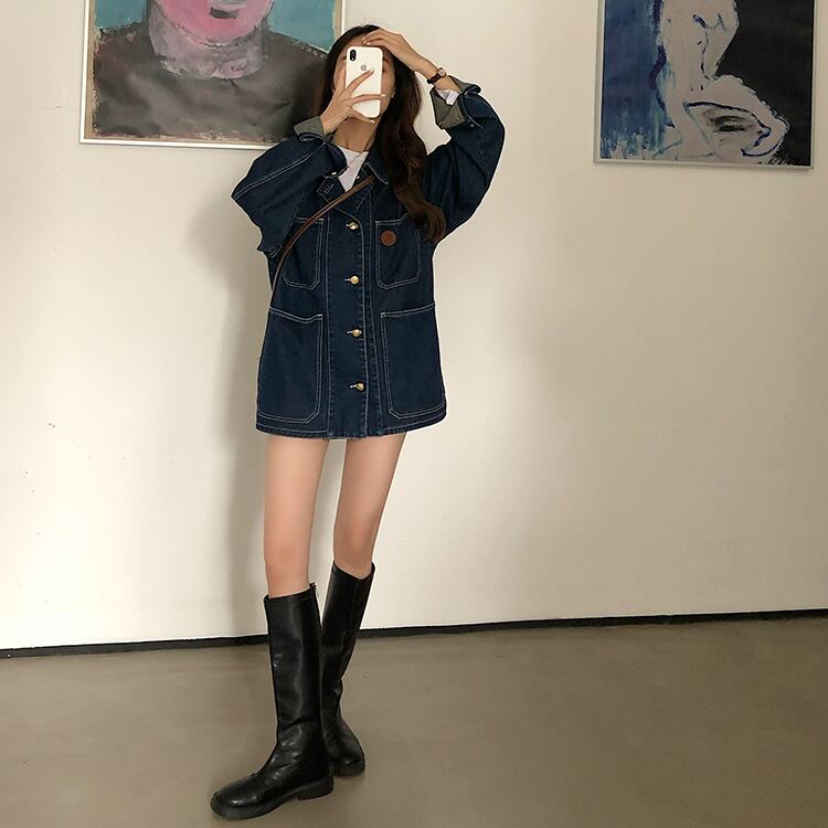 アウター レディース ジャケット Gジャン 膝上 長袖 無地 春 秋 冬 ストレート 前開き かわいい 大人可愛い きれいめ シンプル カジュアル 大人 おしゃれ お洒落 メンズライク ボーイッシュ ショート 袖あり ブルーデニム S M L 10代 20代 30代 ペア ママ 通勤 学生 通学 デート お出かけ 公園デビュー 女子会 休日 アウトドア イベント 旅行 着回し 普段使い 重ね着 韓国 オルチャン ファッション コーデ 楽ちん モテ 脚長 プレゼント インスタ映え ゆったり | Rena 韓国ファッション レディースアパレル