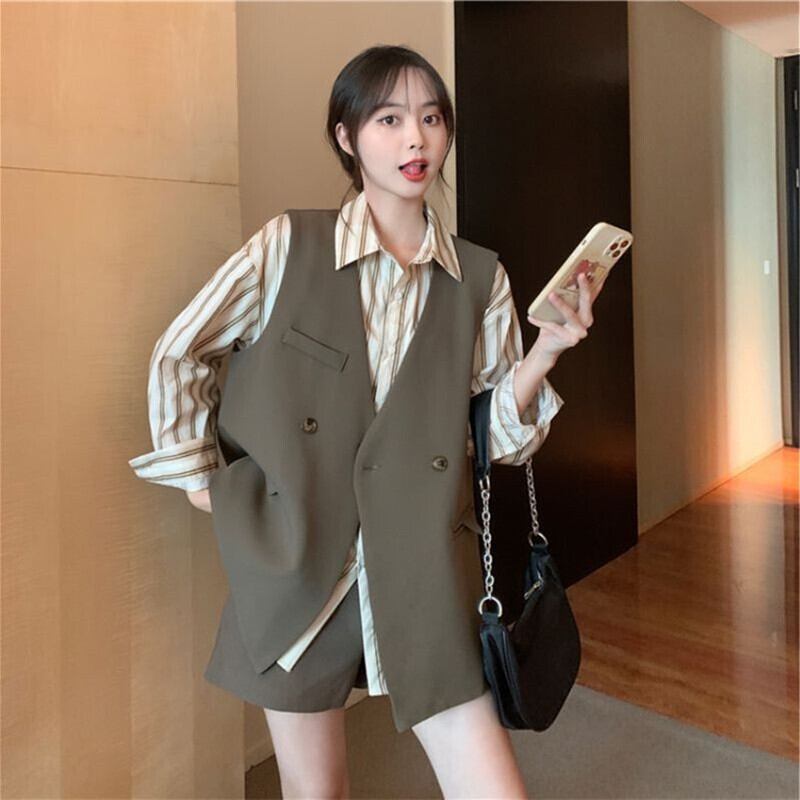 シャツ ベスト 長袖 無地 秋 冬 2way 大人可愛い 大人 上品 おしゃれ お洒落 かっこいい レトロ 大人女子 こなれ感 メンズライク 個性的 クール モード系 主役級 存在感 襟付き 2点セット お得 秋カラー M L XL 2XL 3XL 4XL 大きいサイズ ゆったり 10代 20代 30代 オフィス ビジネス OL 通勤 学生 通学 デート お出かけ パーティー イベント 旅行 クリスマス バレンタイン 韓国 オルチャン ファッション コーデ スタイル 体系カバー インスタ映え | Rena 韓国ファッション レディースアパレル