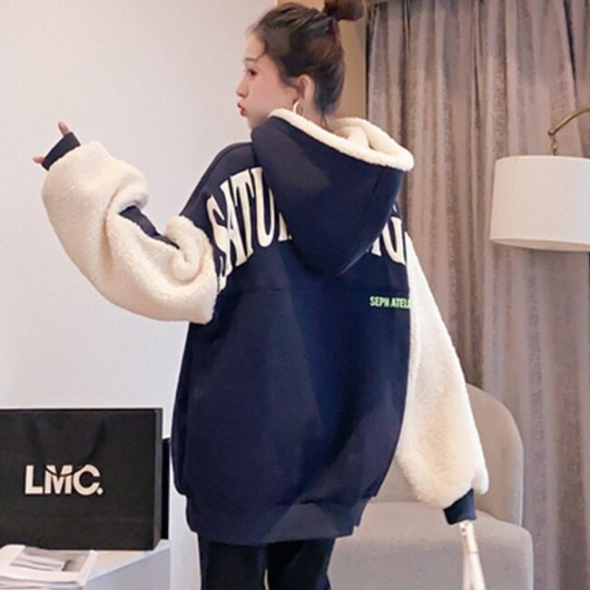 パーカー トレーナー 長袖 プリント 秋 冬 ワイド もこもこ モコモコ フード付き ファスナー ポケット 大人可愛い カジュアル 大人 お洒落 かっこいい 大人女子 ラフ メンズライク ボーイッシュ スポーティー プルオーバー フーディー 綿 ポリエステル 厚手 赤 レッド 青 ブルー M L XL 大きい 大きめ ビッグサイズ ゆったり ゆる 10代 20代 ユニセックス お泊まり 休日 アウトドア イベント ファッション 楽ちん あったか 暖かい 防寒 体系カバー ゆったり | Rena 韓国ファッション レディースアパレル