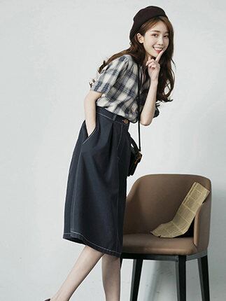 セットアップ シャツ デニムスカート 膝丈 半袖 チェック 春 夏 秋 Aライン ウエストマーク かわいい 大人可愛い きれいめ シンプル カジュアル 上品 襟付き ひざ丈 上下セット 2点セット お得 S M L XL 大きいサイズ 10代 20代 30代 女性用 学生 通学 デート お出かけ 女子会 休日 旅行 着回し 普段使い ファッション コーデ スタイル 定番 プチプラ 送料無料 | Rena 韓国ファッション レディースアパレル