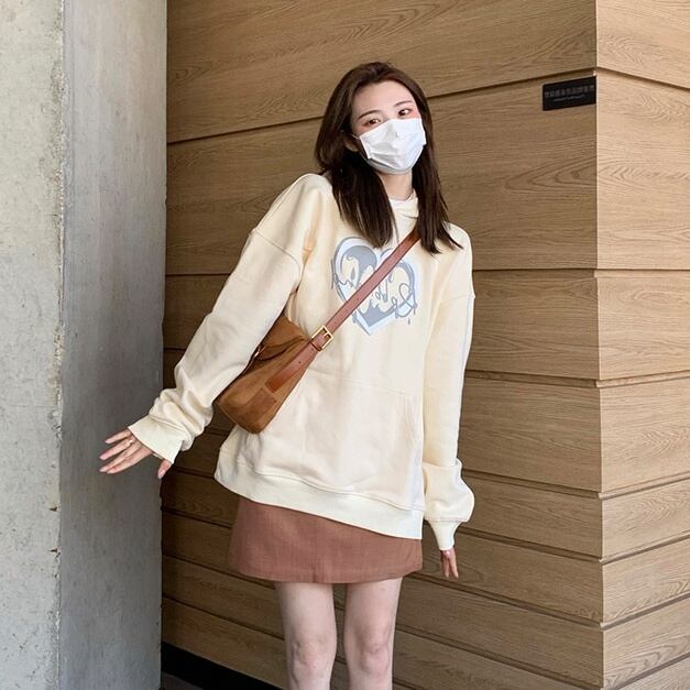 アウター レディース パーカー 長袖 プリント 春 秋 冬 ハート かわいい カジュアル 大人可愛い ラフ スポーティー ラブリー キュート ガーリー ルーズ ボリューム袖 プルオーバー パステルカラー S M L XL 10代 20代 30代 学生 通学 デート お出かけ 公園デビュー 女子会 アウトドア 旅行 ファッション 楽ちん モテ 体系カバー | Rena 韓国ファッション レディースアパレル