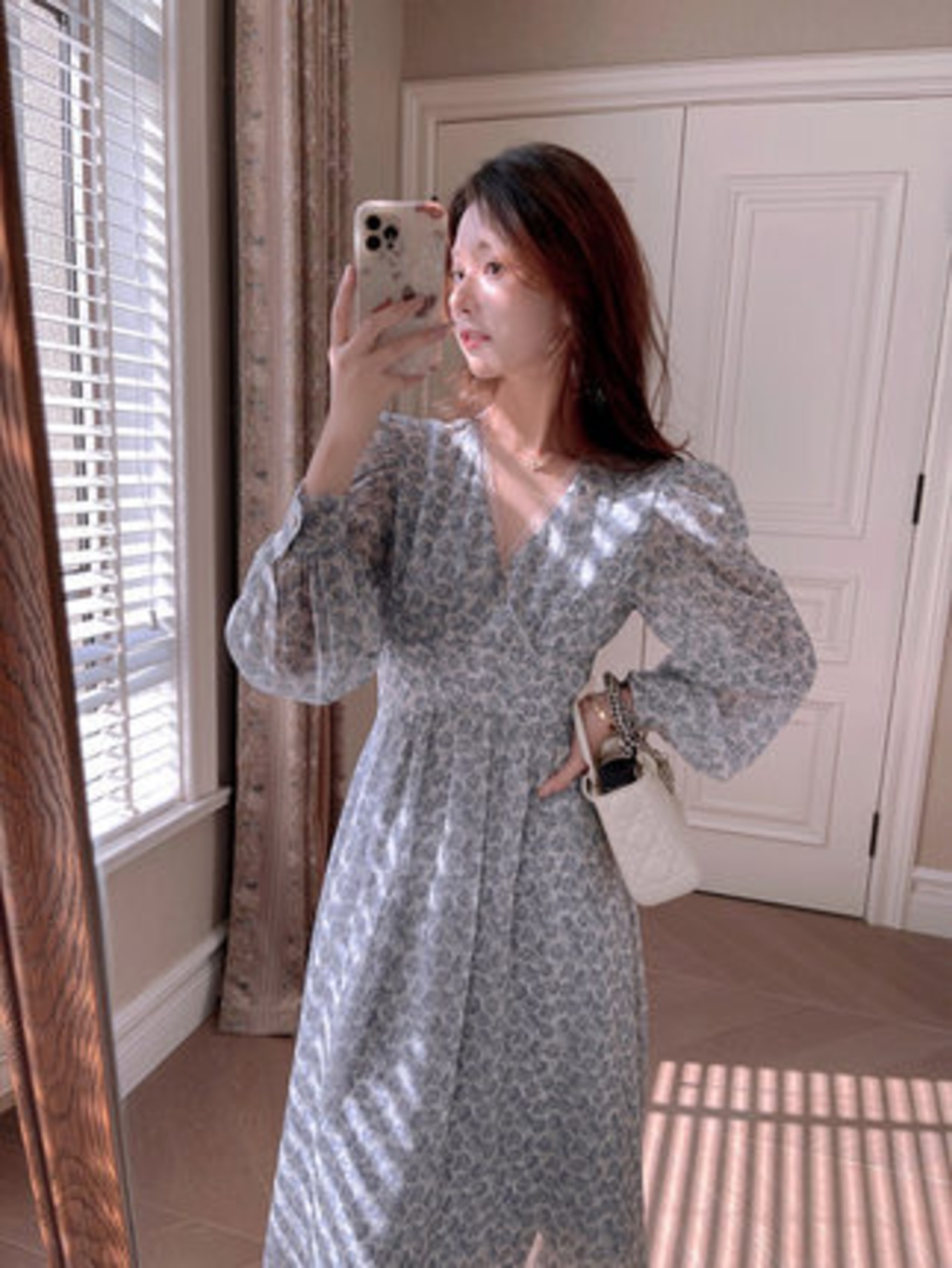 ワンピース ブラウス シフォンワンピース ロング丈 長袖 フラワー 春 夏 フレア シフォン かわいい 大人可愛い 上品 大人可愛い キュート ガーリー 抜け感 カシュクール ロング パフスリーブ 薄手 くすみカラー S M L XL 10代 20代 30代 40代 デート お出かけ 女子会 お泊まり パーティー イベント リゾート 旅行 海 プール 二次会 スタイル | Rena 韓国ファッション レディースアパレル