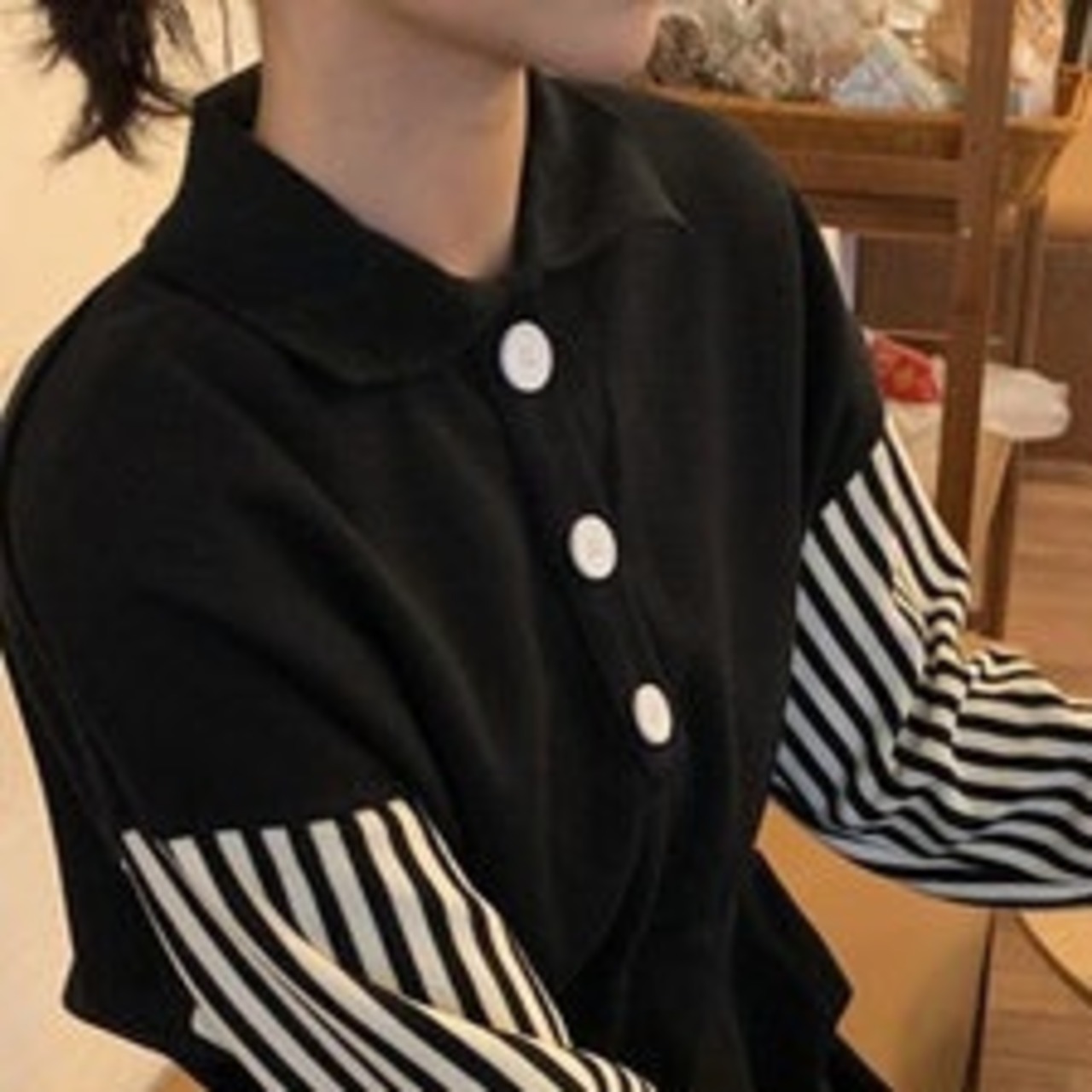 ポロカラーに袖のボーダーがアクセントで、他にはないデザインになっています。