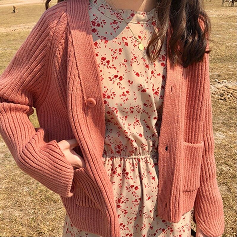 ワンピース セットアップ カーディガン シフォンワンピース ミモレ丈 ロング丈 長袖 花柄 小花柄 春 秋 冬 セミフレア シフォン ウエストゴム ケーブルニット かわいい 大人可愛い きれいめ 上品 おしゃれ お洒落 大人女子 こなれ感 ラブリー キュート ガーリー 主役級 Vネック 袖あり 2点セット ツーピース S M L XL 20代 30代 デート お出かけ 休日 イベント 旅行 着回し 韓国 韓国系 オルチャン ファッション コーデ スタイル 送料無料 インスタ映え | Rena 韓国ファッション レディースアパレル
