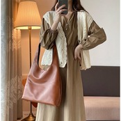 オフホワイトの鍵網ニットでガーリーな印象のベストと深い色合いで秋感たっぷりのワンピースのセット商品です。