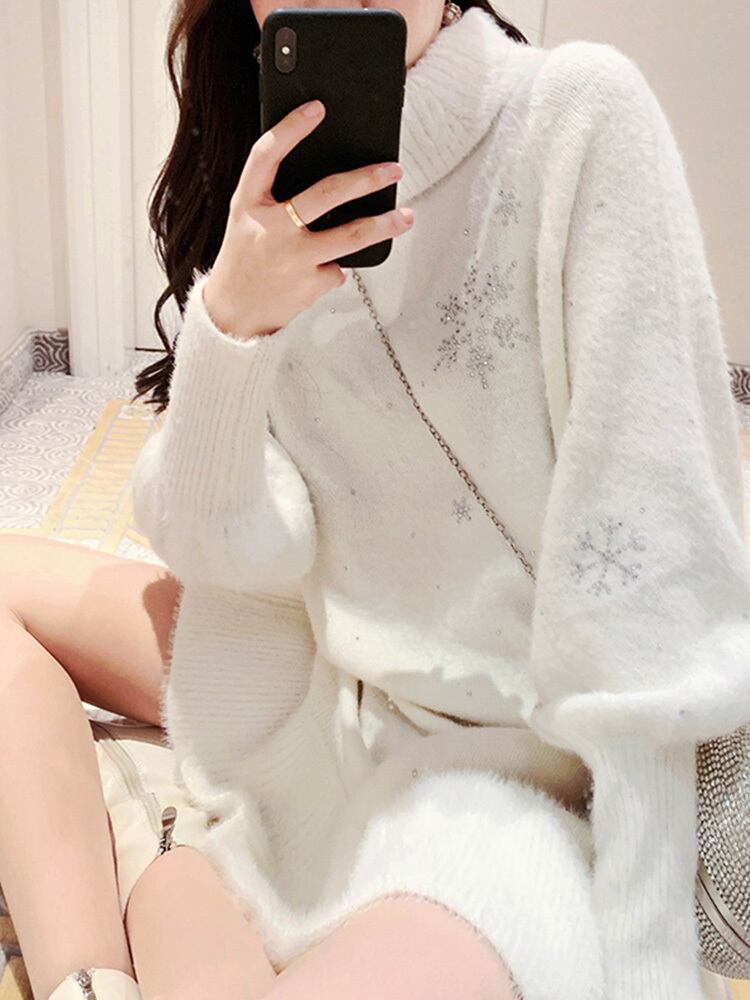 雪結晶が可愛らしい冬にぴったりのニットワンピースです。