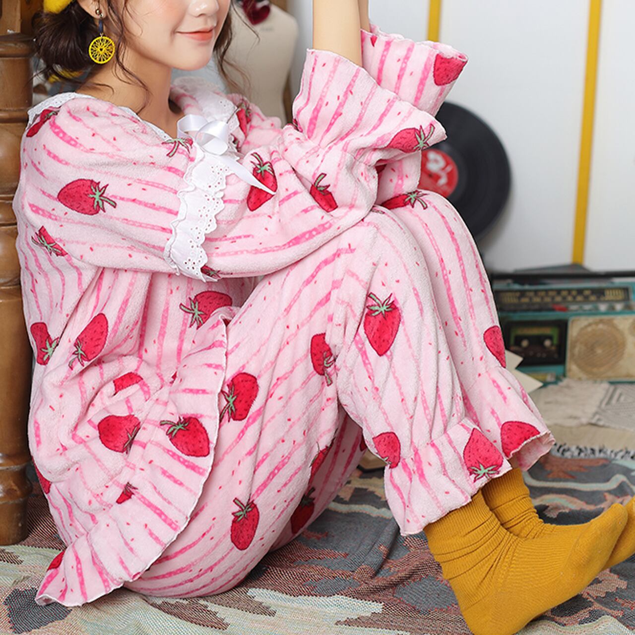 ルームウェア レディース パジャマ レディース ホームウエア 長袖 無地 柄 花柄 冬 リボン ふわふわ かわいい ラフ ラブリー キュート ガーリー ルーズ 襟付き 部屋着 寝巻き ナイトウェア コスプレ 上下セット お得 青 ブルー ピンク M L XL XXL ゆったり 10代 20代 30代 40代 楽ちん あったか 防寒 | Rena 韓国ファッション レディースアパレル