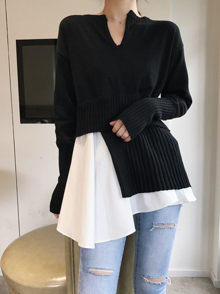 カットソー ニット 長袖 無地 秋 冬 アシンメトリー 大人 かっこいい 個性的 クール 存在感 白 ホワイト 黒 ブラック S M L XL 通勤 通学 デート お出かけ 着回し コーデ | Rena 韓国ファッション レディースアパレル