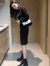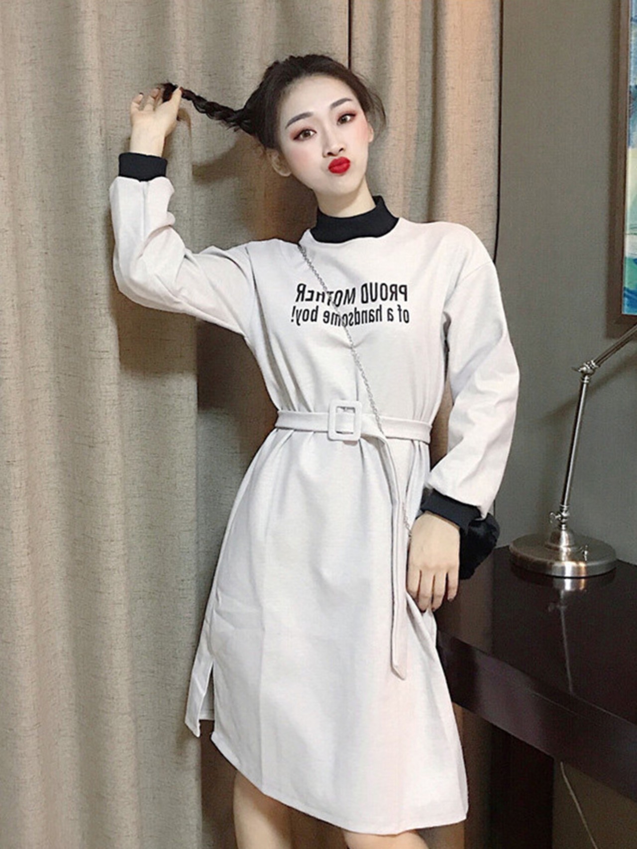ワンピース 膝丈 柄 秋 冬 ウエストベルト サイドスリット シンプル カジュアル おしゃれ かっこいい 大人女子 こなれ感 ラフ ガーリー ハイネック 白 ホワイト 黒 ブラック S M L XL 10代 20代 30代 40代 50代 60代 通勤 学生 通学 お出かけ 公園デビュー 女子会 お泊まり 休日 イベント 普段使い | Rena 韓国ファッション レディースアパレル