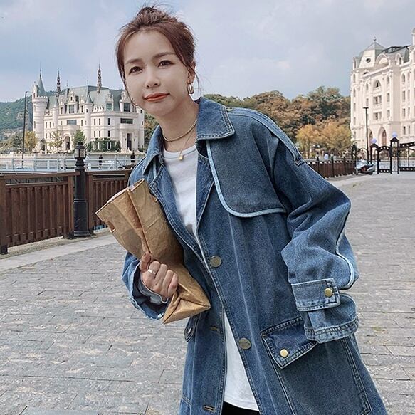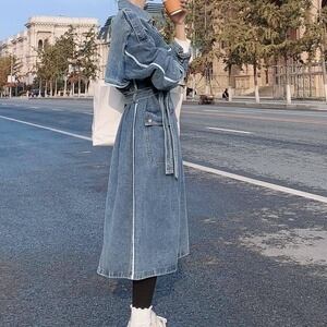 アウター レディース コート デニム マキシ丈 長袖 無地 春 秋 スリム ストレート Iライン 前開き かわいい 大人可愛い きれいめ シンプル カジュアル 大人 上品 おしゃれ お洒落 かっこいい レトロ 大人可愛い 大人女子 個性的 Vネック ミモレ 袖あり ブルーデニム S M L 20代 30代 学生 通学 デート お出かけ 女子会 休日 着回し 普段使い 韓国 韓国系 オルチャン ファッション コーデ スタイル モテ プレゼント 新作 定番 送料無料 トレンド 流行 インスタ映え | Rena 韓国ファッション レディースアパレル