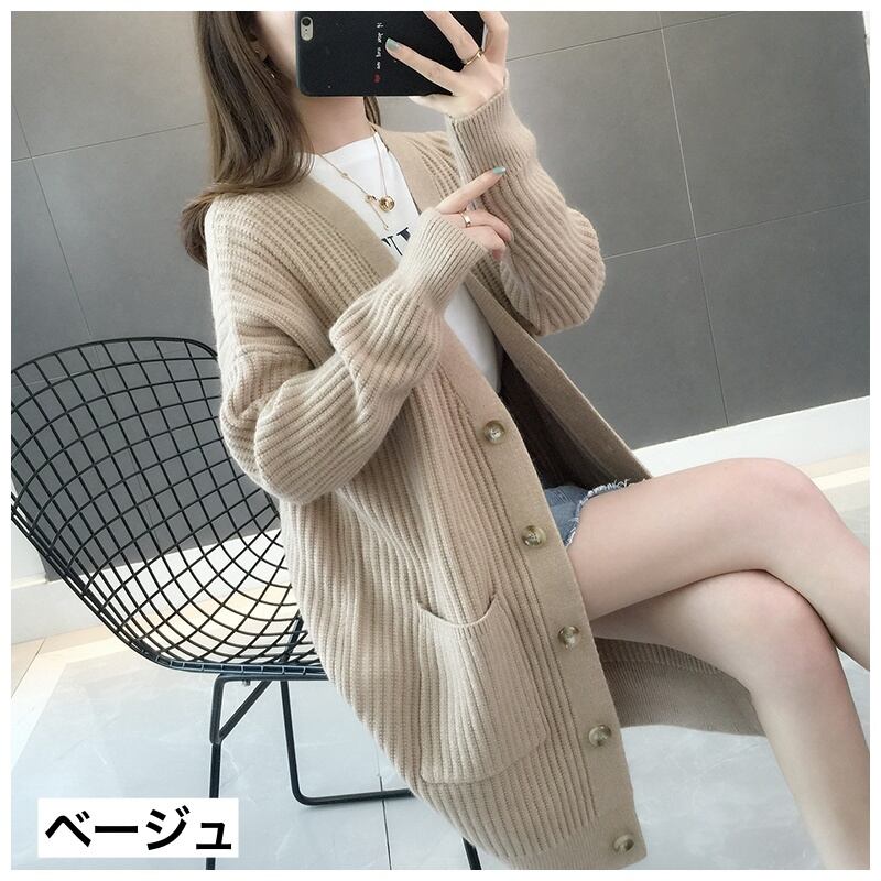 アウター レディース ニット カーディガン ロング丈 長袖 無地 春 秋 冬 かわいい 大人可愛い きれいめ シンプル カジュアル 大人 上品 おしゃれ お洒落 大人可愛い 大人女子 ルーズ 個性的 とろみ感 抜け感 Vネック ロング 袖あり 白 ホワイト 黒 ブラック 赤 レッド 青 ブルー ベージュ S M L XL 20代 30代 女の子 学生 通学 デート お出かけ 女子会 休日 着回し 普段使い 韓国 韓国系 オルチャン ファッション コーデ 暖かい 送料無料 トレンド 流行 インスタ映え | Rena 韓国ファッション レディースアパレル