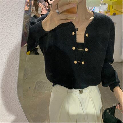 ニット セーター ショート丈 長袖 無地 秋 冬 大人可愛い きれいめ シンプル 大人 上品 おしゃれ お洒落 かっこいい 大人女子 こなれ感 クール 抜け感 襟なし 袖あり 白 ホワイト 黒 ブラック アプリコット S M 10代 20代 OL 通勤 学生 通学 デート お出かけ 女子会 お泊まり 休日 パーティー イベント リゾート 旅行 クリスマス バレンタイン 着回し 普段使い 重ね着 双子 韓国 韓国系 オルチャン ファッション コーデ スタイル モテ 新作 トレンド インスタ映え | Rena 韓国ファッション レディースアパレル
