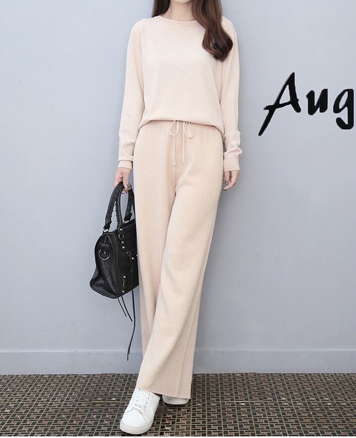 セットアップ ニット ワイドパンツ 長袖 無地 秋 冬 大人可愛い きれいめ シンプル カジュアル 大人 上品 おしゃれ かっこいい 大人女子 こなれ感 ラフ スポーティー クール 抜け感 ラウンドネック 襟なし 上下セット 2点セット ツーピース 黒 ブラック 灰色 グレー ベージュ S M L XL 2XL 3XL 大きいサイズ 10代 20代 30代 40代 ママ マタニティ 通勤 学生 通学 デート お出かけ 公園デビュー 女子会 休日 普段使い お揃い 双子 韓国系 コーデ 楽ちん | Rena 韓国ファッション レディースアパレル