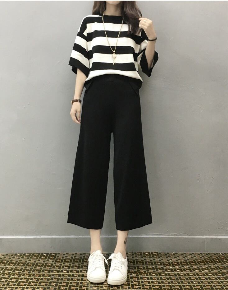 セットアップ ニット ワイドパンツ 五分袖 ボーダー 秋 大人可愛い きれいめ シンプル カジュアル 大人 上品 おしゃれ かっこいい 大人女子 こなれ感 ラフ クール 存在感 抜け感 ラウンドネック 襟なし 上下セット 2点セット ツーピース 黒 ブラック S M L XL 2XL 3XL 大きいサイズ 10代 20代 30代 40代 ママ マタニティ オフィス OL 通勤 学生 通学 デート お出かけ 公園デビュー 女子会 休日 普段使い お揃い 双子 韓国系 コーデ 楽ちん