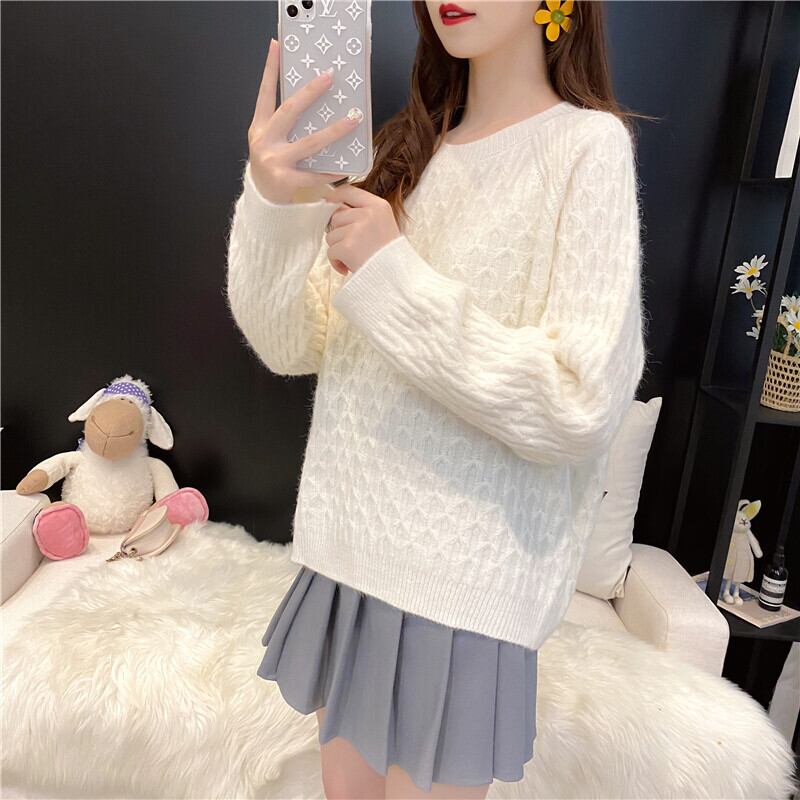 ニット セーター 無地 秋 冬 もこもこ ケーブルニット 編み込み かわいい 大人可愛い きれいめ シンプル 大人 おしゃれ お洒落 レトロ 大人女子 こなれ感 ラフ ラウンドネック 襟なし 袖あり 白 ホワイト 青 ブルー 緑 グリーン 黄色 イエロー オレンジ アプリコット S M L XL 10代 20代 女性用 OL 通勤 通学 デート お出かけ 女子会 お泊まり イベント リゾート 旅行 クリスマス バレンタイン 着回し 普段使い オルチャン あったか 暖かい モテ インスタ映え | Rena 韓国ファッション レディースアパレル