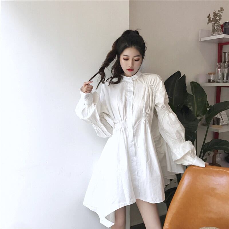 ワンピース シャツ シャツワンピース 膝上 長袖 無地 春 秋 冬 Aライン アシンメトリー 前開き かわいい 大人可愛い シンプル おしゃれ お洒落 こなれ感 ラフ ラブリー キュート ガーリー 抜け感 スタンドカラー パフスリーブ 白シャツ フリーサイズ 10代 20代 30代 40代 ママ マタニティ OL 通勤 学生 通学 デート 女子会 お泊まり 休日 旅行 クリスマス バレンタイン 着回し 普段使い 重ね着 韓国系 スタイル 楽ちん 体系カバー 美脚 脚長 インスタ映え ゆったり | Rena 韓国ファッション レディースアパレル