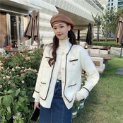 アウター レディース コート ノーカラージャケット ショート丈 長袖 無地 秋 冬 スリム タイト 細身 ふわふわ きれいめ シンプル 大人 上品 おしゃれ お洒落 大人女子 こなれ感 ラウンドネック 襟なし ショート 白 ホワイト 黒 ブラック フリーサイズ 10代 20代 30代 ママ OL 通勤 学生 通学 デート お出かけ 女子会 お泊まり イベント 旅行 クリスマス バレンタイン 普段使い お揃い 双子 韓国 韓国系 オルチャン ファッション コーデ スタイル あったか 暖かい モテ