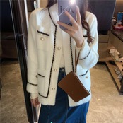 ラウンドネックに女性らしいパールとステッチのデザインが魅力的なニットのジャケットです。
