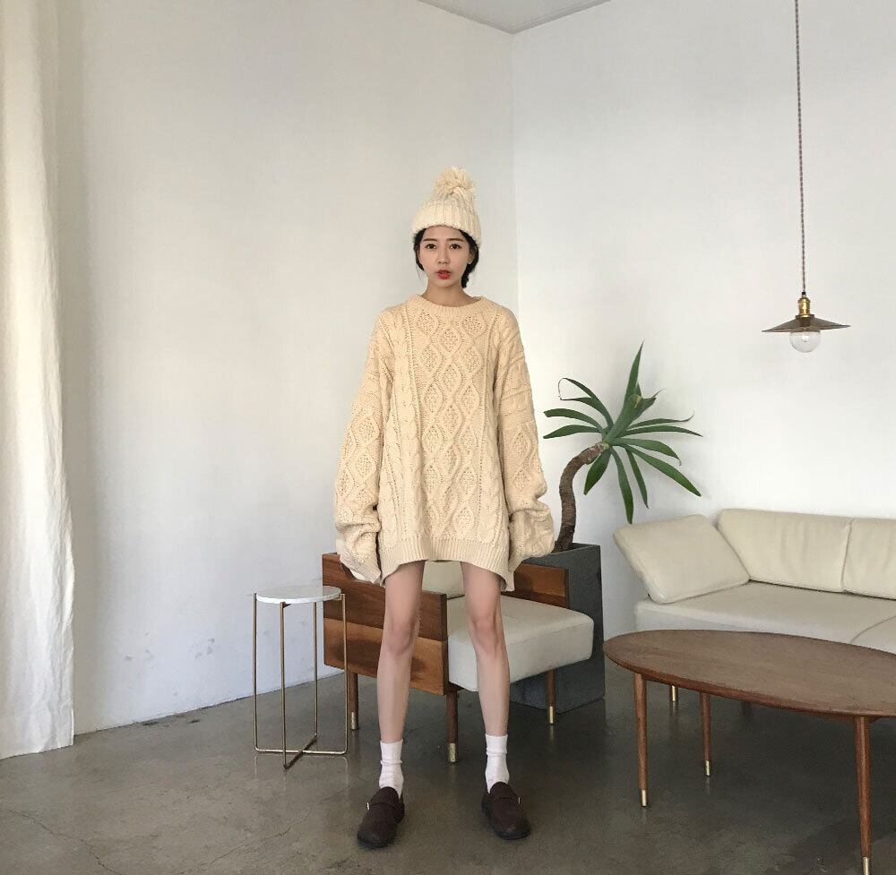 ニット セーター 膝上 長袖 無地 秋 冬 ワイド ケーブルニット クロシェ 編み込み かわいい 大人可愛い きれいめ シンプル カジュアル 大人 おしゃれ お洒落 大人女子 こなれ感 ラフ 主役級 存在感 ラウンドネック 襟付き 灰色 グレー オフホワイト フリーサイズ 大きい 大きめ ビッグサイズ ゆったり 10代 20代 30代 40代 ユニセックス 学生 通学 クリスマス バレンタイン 韓国系 オルチャン ファッション 楽ちん あったか 防寒 モテ 体系カバー 定番 インスタ映え | Rena 韓国ファッション レディースアパレル